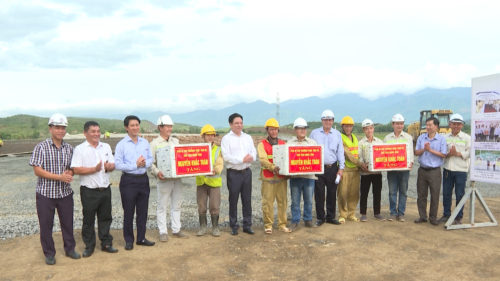 Dịp này, Phó Bí thư Thường trực Tỉnh uỷ Nguyễn Khắc Toàn tặng quà động viên đơn vị nhà thầu đang thi công dự án đường bộ cao tốc Vân Phong – Nha Trang và dự án đường bộ cao tốc Khánh Hoà – Buôn Ma Thuột.
