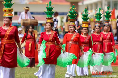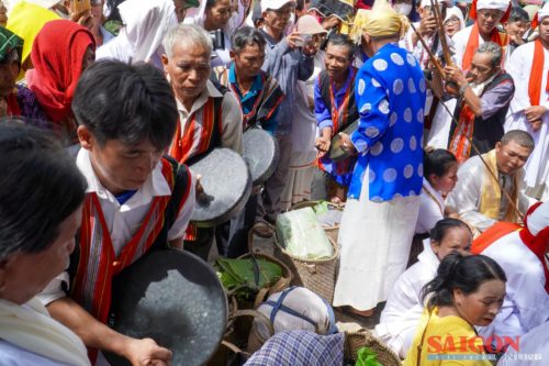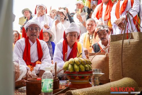 Người Chăm đón y trang do người Raglai trao – nghi thức linh thiêng thể hiện sự gắn kết giữa hai cộng đồng dân tộc anh em. Ảnh: HIẾU GIANG