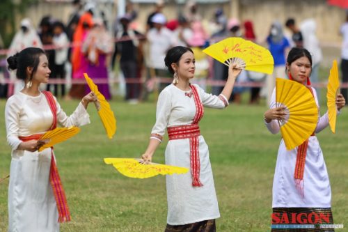 Tiết mục múa biểu diễn chào mừng Lễ hội Katê năm 2025 tại xã Phước Hữu. Ảnh: HIẾU GIANG