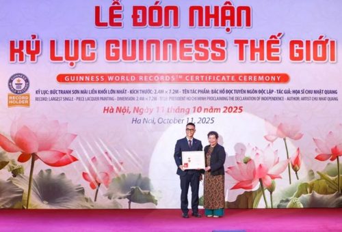 Bức tranh sơn mài “Bác Hồ đọc Tuyên ngôn Độc lập” được Tổ chức Kỷ lục Guinness thế giới công nhận là “Bức tranh sơn mài liền khối lớn nhất thế giới”.